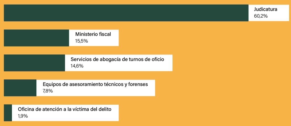 Distribución de casos de violencia institucional machista por perfil de agente del sector judicial.