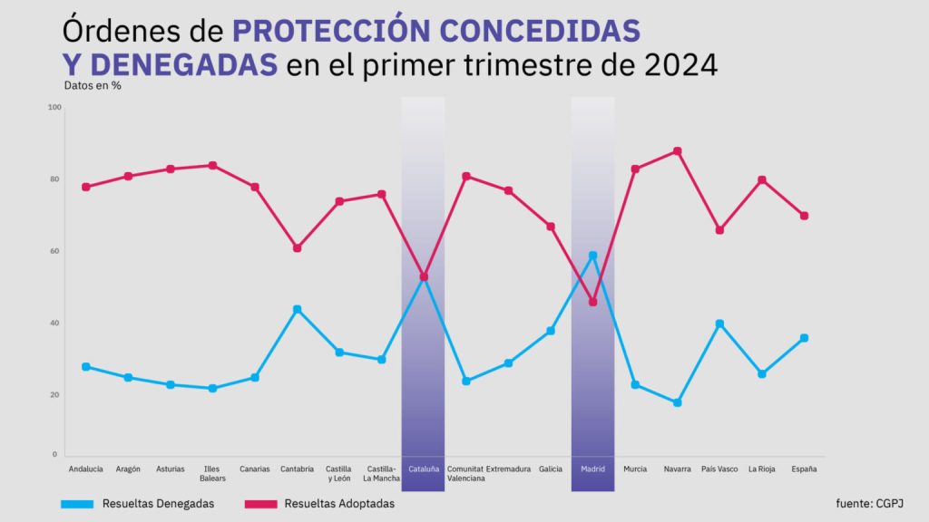 Cataluña y Comunidad de Madrid, los juzgados que conceden menos órdenes de protección